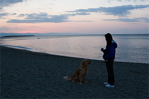 「タロー,じゃまだぞー。海を撮るんだから…,あ,しょうがないなぁ。どいてどいてー。」