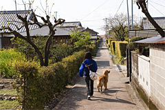 通路は狭く入り組んで瓦練塀と呼ばれる石の塀が張り巡らされている。