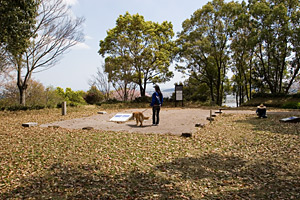 寒さと風も手伝って与島PAにもほとんど人影はない。エリアの端っこでリードを解いてやると,タローがついっと歩き出す。