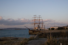 夕日を求めて村を歩くと,PAから直接利用できる観光施設「フィッシャーマンズワーフ」があった。総工費40億円,開業当初は観光客でにぎわったようだが,1月に廃業した。甘い需要予測に基づいた本四架橋の夢の跡。