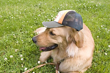風の匂いをくんくん嗅ぎながら歩いていたタローはぺたんと草にすわって心地良さそうに休憩中。 …日差しが強いから帽子かぶってな。 ああ、一年中、こんな陽気ならいいのに。