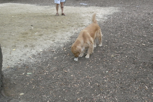 最近、ちょっとドッグランをごぶさたしていたタロー。みんな誘いに来てくれますが、ちょっと引き気味。うまく仲間に入っていけません。