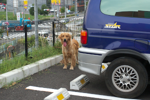 留守番していればいいのに…。人気のまったくない公園で遊んだこの一瞬以外はひたすら車に乗ってるだけだったタロー。おつかれさん。