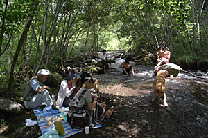バーベキュー(ボクたちお茶漬け)、カブトムシ採集、釣り(送り迎え)、食事がこれまたタイヘンな量…。できれば、子どもの声だけは聞きたくないボクたちの休日なのに、まるでまんま仕事です。おかげで、完璧カントリーライフを体験中。あしたは山登りに芋掘りです。
