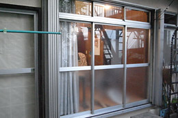 ガラス磨き。内側はなおみの担当です。この作業は水が冷たい師走より、この時期の方がずっと合理的です。