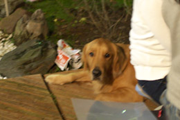 タローはすねてるんじゃありません。スペアリブの骨(お肉いっぱいついてる)を5本ももらって満足してます。