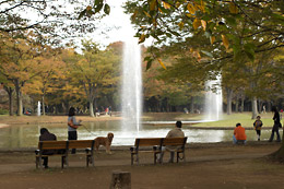お昼前、フロムオーブンのパンとコーヒーを持って代々木公園に出掛けました。銀杏並木もほんのり秋色。