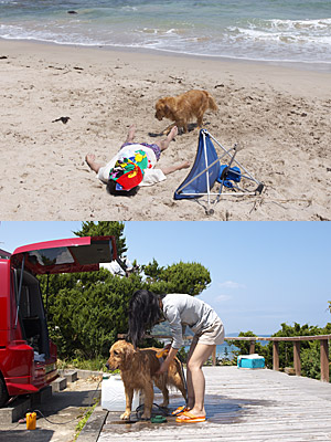 スネから甲にかけての日焼けなんて,骨折してるんじゃないかと思うほど痛い。それでも,潮を浴びたグッズや車,それにタローも洗わなくっちゃ。
