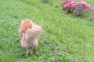 「タロー,ボールはダメだぞ。まだ,地面がどろどろなんだから,そっと歩いてくれ。」