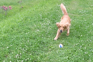 最近は遊びの嗜好も変わったものかと思っていたら,ほどなく外野フェンスの外にある植え込みで,千切れんばかりに尻尾を振り出した。リードを解いてやると,ブッシュに潜り込み,さかんに嗅ぎ回った挙げ句に,先ほどのとほとんど変わらぬボールをくわえて出てきた。草と泥だらけになった顔を向け,褒めてくれろと尾を振り続ける。撃った水鳥をレトリーブ(取ってくる)してくるのが,先祖の仕事だったそうだ。タローにとってボールは獲物なのかも知れない。