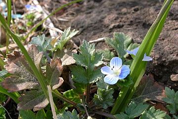 遠目にも枯れ野原が暖かく見えるのは、気温のせいばかりではなく、こんな春色が混じりはじめているからなんですね。