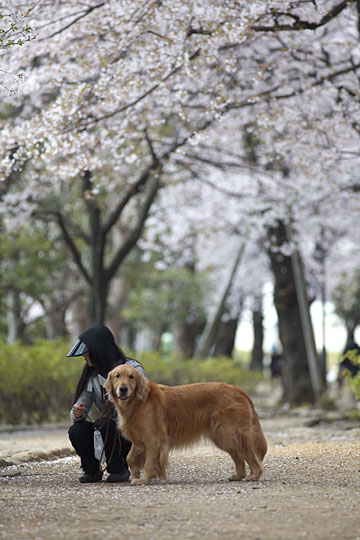 駅前のモスバーガーでチキンやライスバーガーなんか買ってきて、タローも連れてお花見のやり直ししました♪