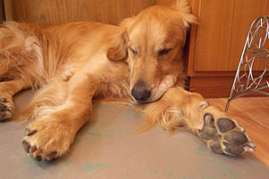 あまりの日差しに外出不可能なタローはタイクツそうです。