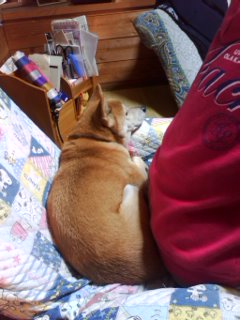 かこママの背中と背もたれの間が定位置です。