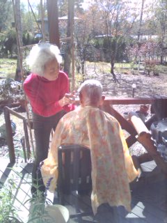 ショートステイに行く前に、かこママにヘアカットしてもらってます。