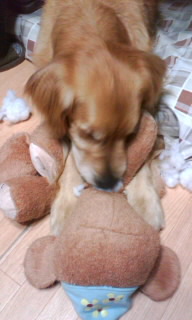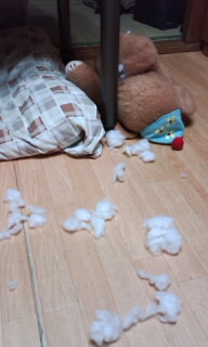 夜、自分からクマさんに飛びかかり、格闘してました。。。