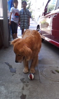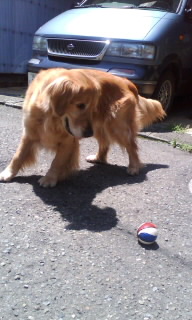 今日も冬物やらタローグッズやらの洗濯の合間にとりあえずボール遊び♪