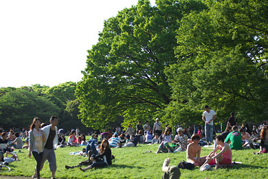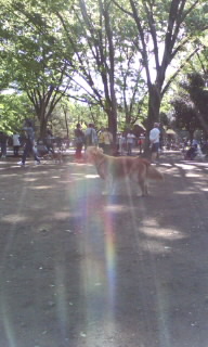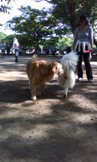 洗濯物を取り込んでから、代々木公園へ。シュウの腰が悪いので、駐車場渋滞覚悟して車で行きました。