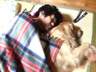 タローはくつろぐどころか、ビクビクしながらじっと耐えていて、そのうちに眠ります。