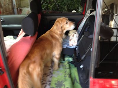 出勤するとき、いつもなら荷物を積んでいる間、庭に遊びに行くのに、今日は玄関から一直線に車に乗り込みました。あーあ、こんなことなら、遠くても、タローを連れて車で行けばよかったよ。でも、車だと片道16時間かかるんですよね(;^_^A