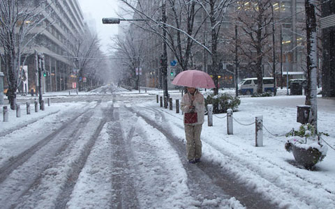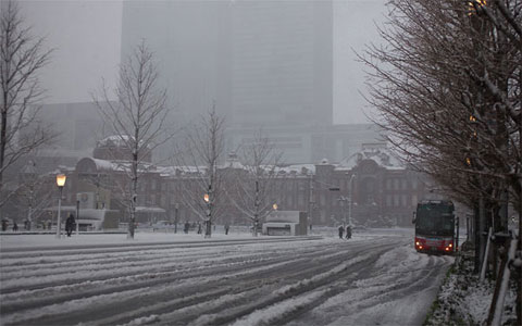東京駅前…ま,吹雪の中を写真撮りに行くボクも五十歩百歩だが…。