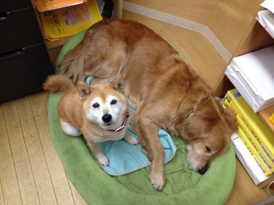 二人ともお待たせ。悪い悪い。 仕事してる間に日が変わって,タローの7才の誕生日も終わっちゃったよ。