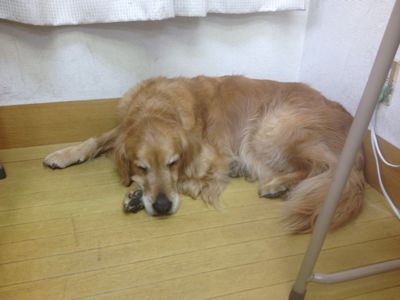 危ないかなぁと思って外に連れ出すと,2時間前に用を足したばかりなのに,お腹を下してますf^_^;
