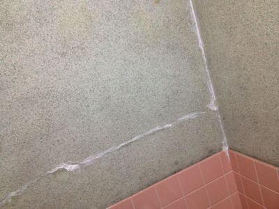 遅ればせながら我が家も復興工事が始まる。震災で風呂場にできたヒビを,この連休に修理することに。