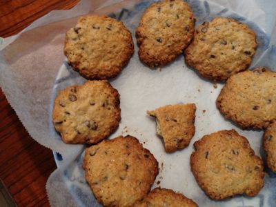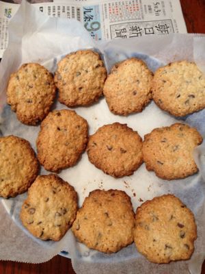 ちょっとひとつ失敬。やたらといい匂い,オートミールのチョコチップクッキーだって。