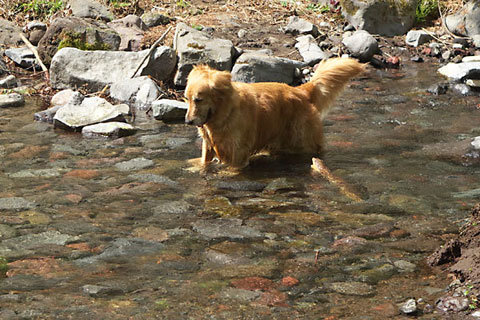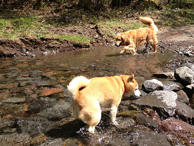 しらべ荘の草取り手伝いはなおみに任せて(笑)タローと車で秘密の川へ行きました。