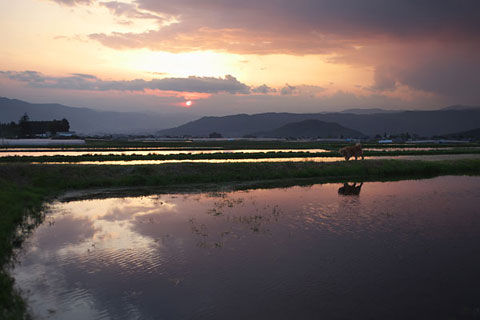まるでラリーカーさながらの勢いで,村を見下ろす田んぼまで下りてきました。