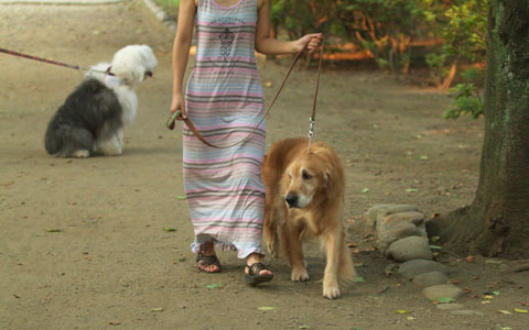 同じ散歩コースを逆回りだったのね(笑) 相手はまだ赤ちゃんで遊んでほしいだけなんだよね。 ぶんぶん,尻尾振ってる。