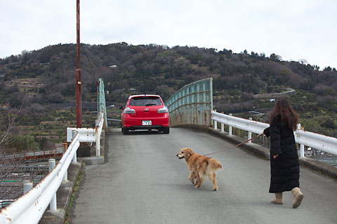 対岸にちょうど満開の河津桜。でも,ボクたちオフなんで人ごみには行かない。