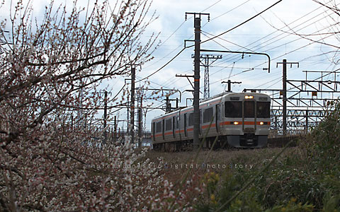 梅林を撮影しながら待ったJR御殿場線。