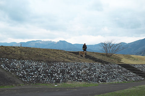 クマさんが連れてきてくれた河川敷で,タローはハイテンション。