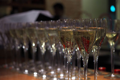 立食パーティーが始まって間もなく,ひとり3分ずつ近況をスピーチ。 その小一時間ほど,みな輪になって立ち,飲食物にも手をつけずにひたすら静かに聞いては拍手する。