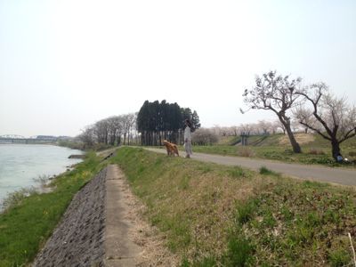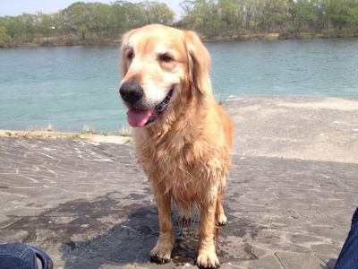 タローと私は川で泳いで楽しかった。