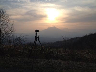 うまく岩手山の上の雲が夕焼けしてくれるとよいのですが…