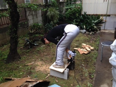 途中でついにへこたれて,電ノコ交代(笑)