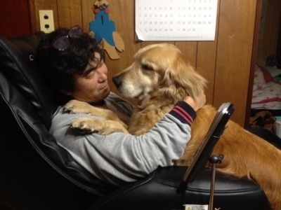 ママが肉球の間の毛をカットするためにハサミを持って呼ぶと,何とか逃げる手はないかとジタバタしていたが,いよいよ追いつめられて,ぱぱー!!(笑)