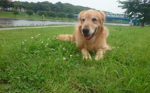 よっぽど草の上が気持ちよかったらしくて,いくら促しても立ち上がりません.