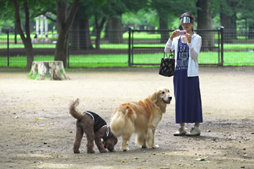 今日はゆっくり休んでおかないといけないんだけど,タローの運動不足が気になって。涼しい午前中に代々木公園のドッグランに行った。