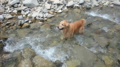 パパもママも忙しそうなので,ボクは一人で川に泳ぎにいくのです。