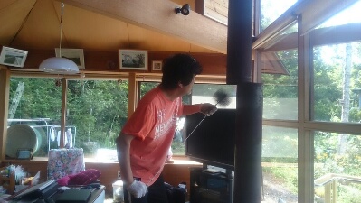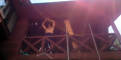 屋根のスレートが焼けてて,登っていられないので,下からちむちむすることにしました。