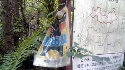クマ注意の看板は,いつも鮮やか。誰かがマメに付け替えてます。よっぽど遭遇情報が多いのでしょう。