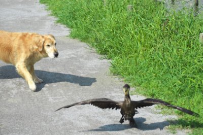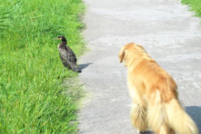 なんとラッキーなウミウくん,もし,通りかかったのがタローじゃなかったら…とくにこのヘンが縄張りの野良ネコたちだったらとっくに命はなかったでしょう。