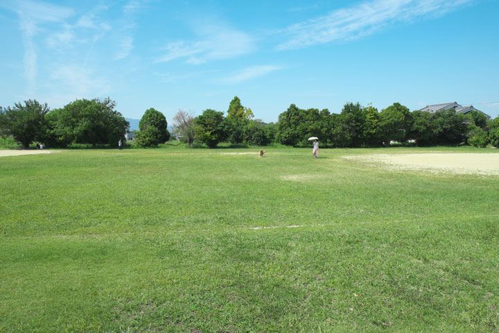 完全に公園化されてイミテーションの土器なんか並べてある遺跡公園が犬の立ち入り禁止で,発掘中のホンモノの藤原京跡がフリーとはこわ如何に。