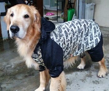 車で雨のかからない場所まで連れて行けないので、久しぶりにレインコートを着て遊歩道までトイレに…(^.^) ちょっとサイズが小さいんですよね~(^^;