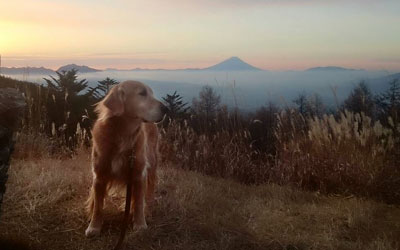 どこに行くか迷っているうちに東の空がみるみる明るくなってきた。猶予はない。富士山は霧に隠れてみえない。シッポを振りながら勇んで車に乗ったタローはもうバックシートで夢の中に戻っている。山麓を回り込むように走り,ダメもとで観音平に登る林道に入った。鹿が多くてスピードを上げられない。