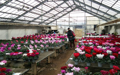 暮れの恒例,菊池華田。母の代理でシクラメンやリンゴの手配をする。